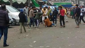 At one stage, a group of people armed with sticks allegedly attacked the demonstrators around 11:45 pm, triggering a chase and counter-chase in the area.